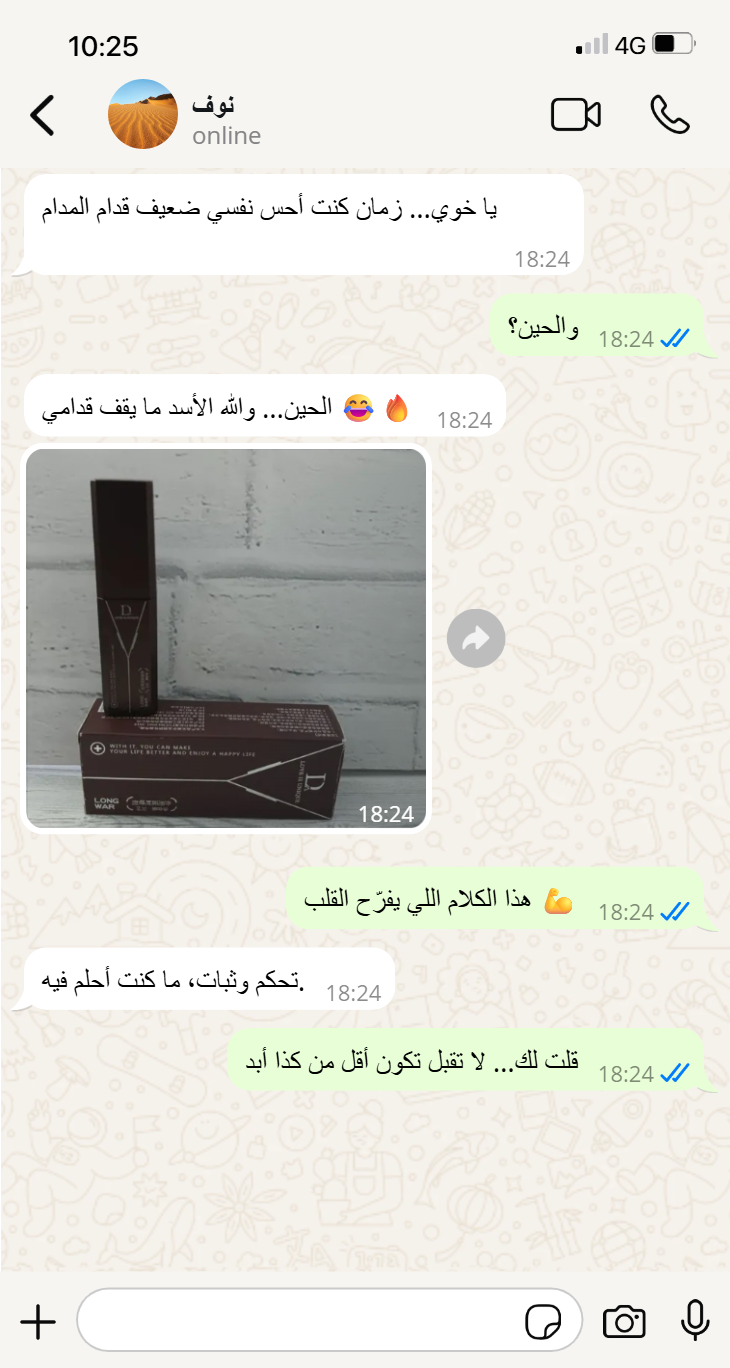 يا أخي، كنت أحس بالإحراج وأتهرب… الحين والله رجعت أسد! صرت أنا المتحكم وهي تنتظر اللحظة طول الوقت. هذا المنتج غير كل شيء بيننا.