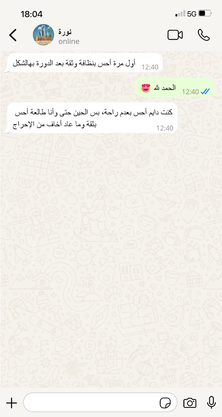 كنت أكره الصيف بسبب الحكة والحرارة في المنطقة الحساسة، وما كنت أقدر ألبس راحتي. بس بعد استخدام الكريم، أحس بثقة ونظافة طوال اليوم، وكل شعور الإزعاج اختفى.