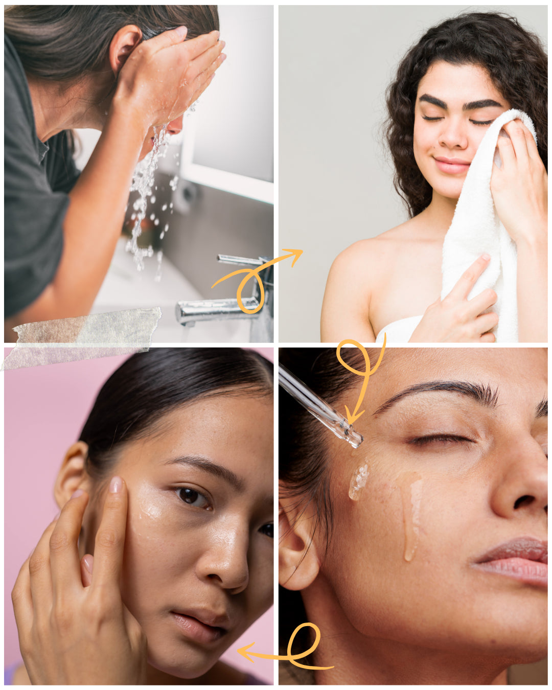 - نظّف وجهك بالغسول المناسب واتركه يجف تمامًا.